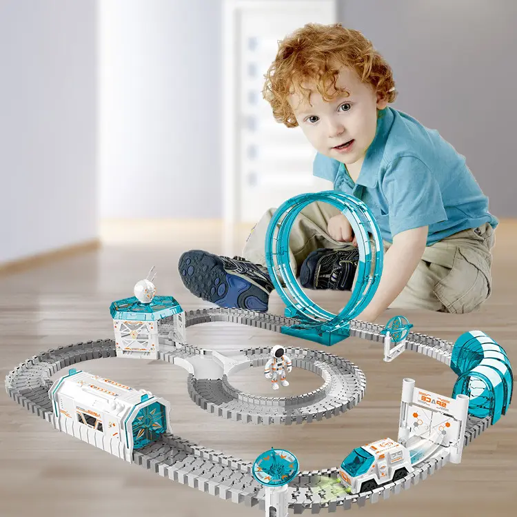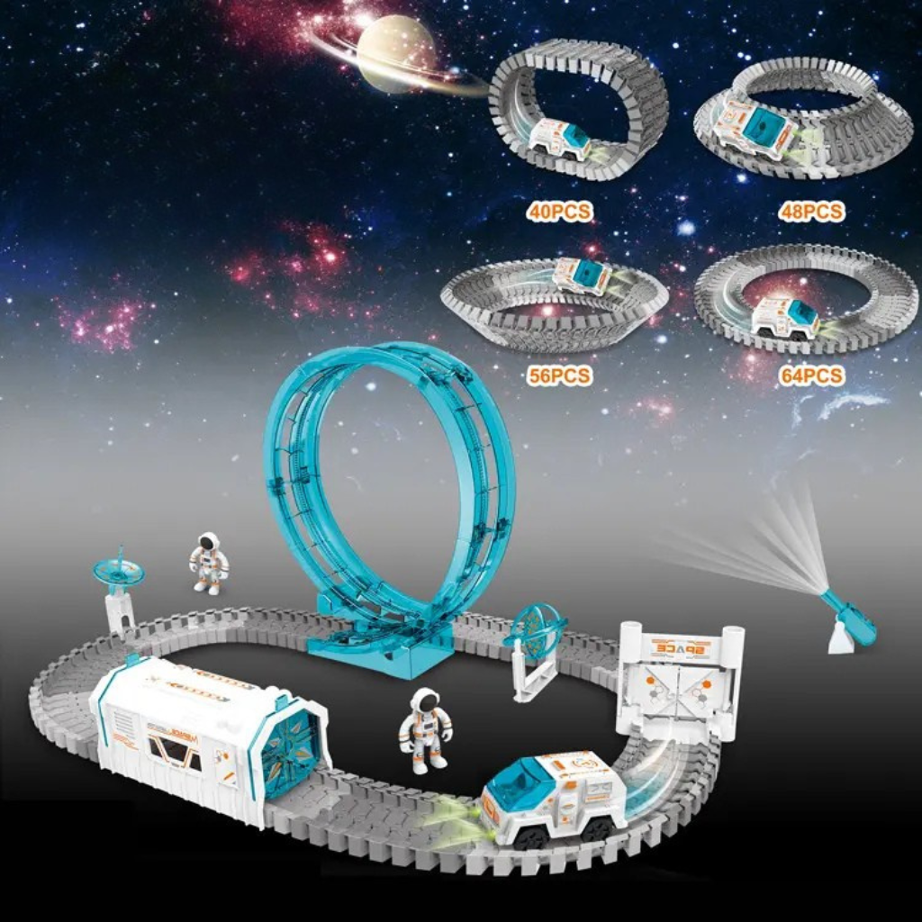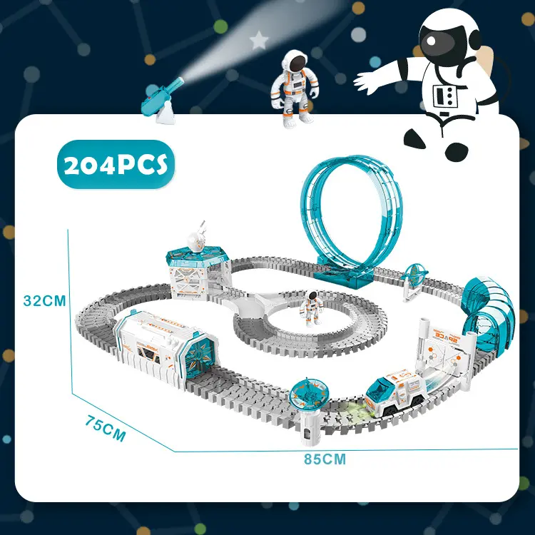 204 Stück Rennstrecken-Spielzeug-Zug-Sets, Weltraum-Spielzeug mit Mini-Sternprojektor, Geburtstags-/Ostergeschenke für Kinder, Jungen und Mädchen