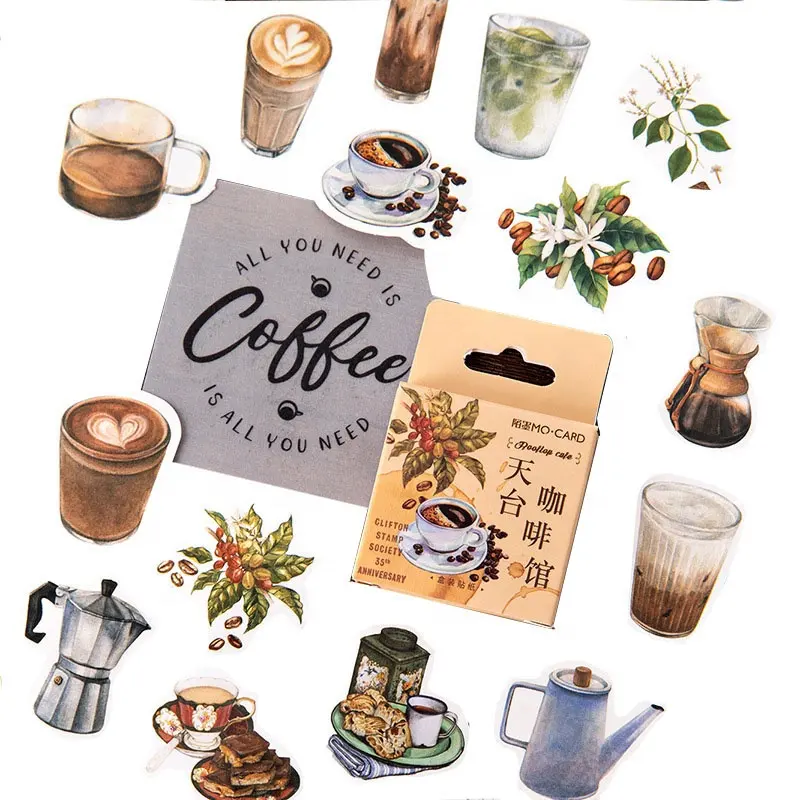 46 Stück Box Kaffee Aufkleber Box DIY Dekoration Vintage Scrapbooking Aufkleber für Kinder