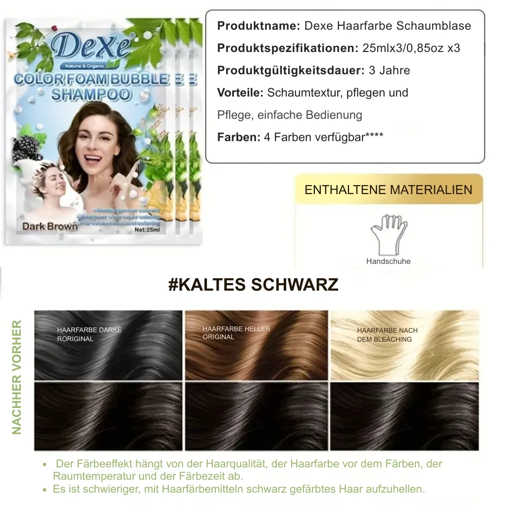Dexe 5-Minuten-Haarfärbe-Schnellshampoo – Schnelle Haarfarbe für Schwarzes & Braunes Haar (10 Stück pro Box)